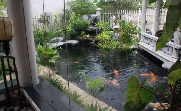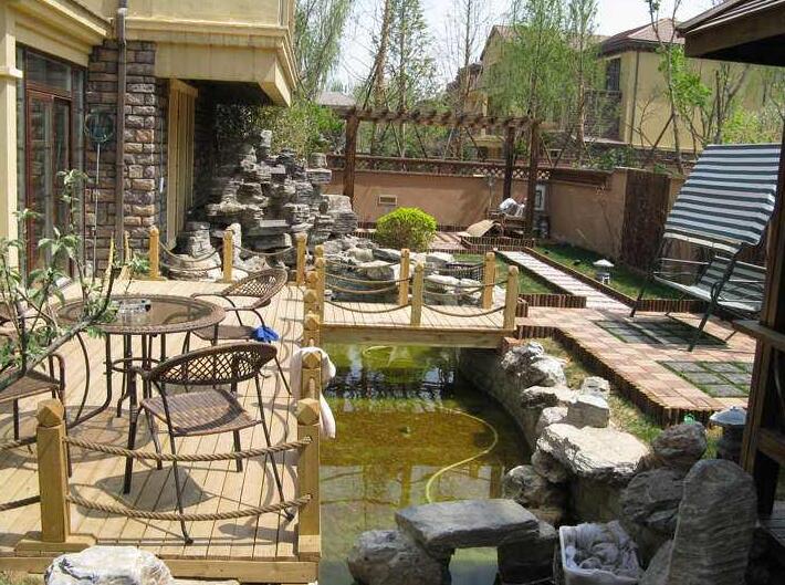 庭院水景中的水池最好是一個(gè)淺水池,深度約一米,這樣的話,可以將它設(shè)計(jì)成噴泉、瀑布等非常美觀的水景造型。