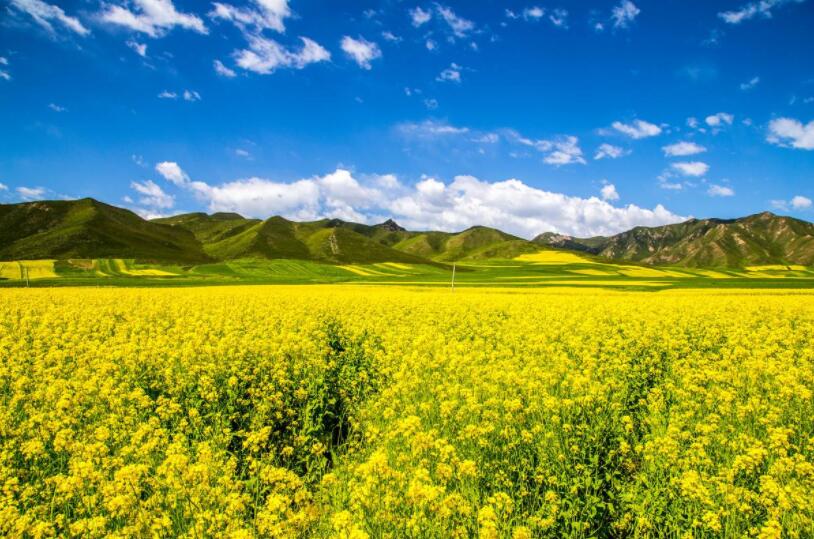 春天油菜花盛開(kāi)的時(shí)候,當(dāng)你在一片片油菜花中徜徉漫步的時(shí)候,會(huì)有一種被花兒包圍的感覺(jué),能看到油菜豐收的景象,感受大自然的芬芳與浸潤(rùn)。油菜花長(zhǎng)在高低不平的丘陵上,黃綠相間、層次分明。油畫(huà)般涂抹、潑彩般酣暢、云霞般瀟灑、火焰般淋漓。