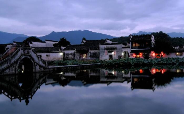 宏村,位于原徽州六縣之一的黟縣東北部,在皖南眾多徽派民居建筑村落中,宏村是其中一個典型的代表。宏村整體外觀形似“牛”,既有山林野趣,又有水鄉(xiāng)風(fēng)貌,全村現(xiàn)完好保存明清民居140余幢,其中包含有明代建筑1幢,清代建筑102幢,民國時期建筑34幢,著名景點還有南湖春曉、月沼風(fēng)荷、雙溪映碧,亭前古樹等。宏村中處處水道相連,汩汩清泉從各戶潺潺流過,古村落與湖光山色交輝相映,宛如一幅美麗的鄉(xiāng)村畫卷,讓人沉醉。